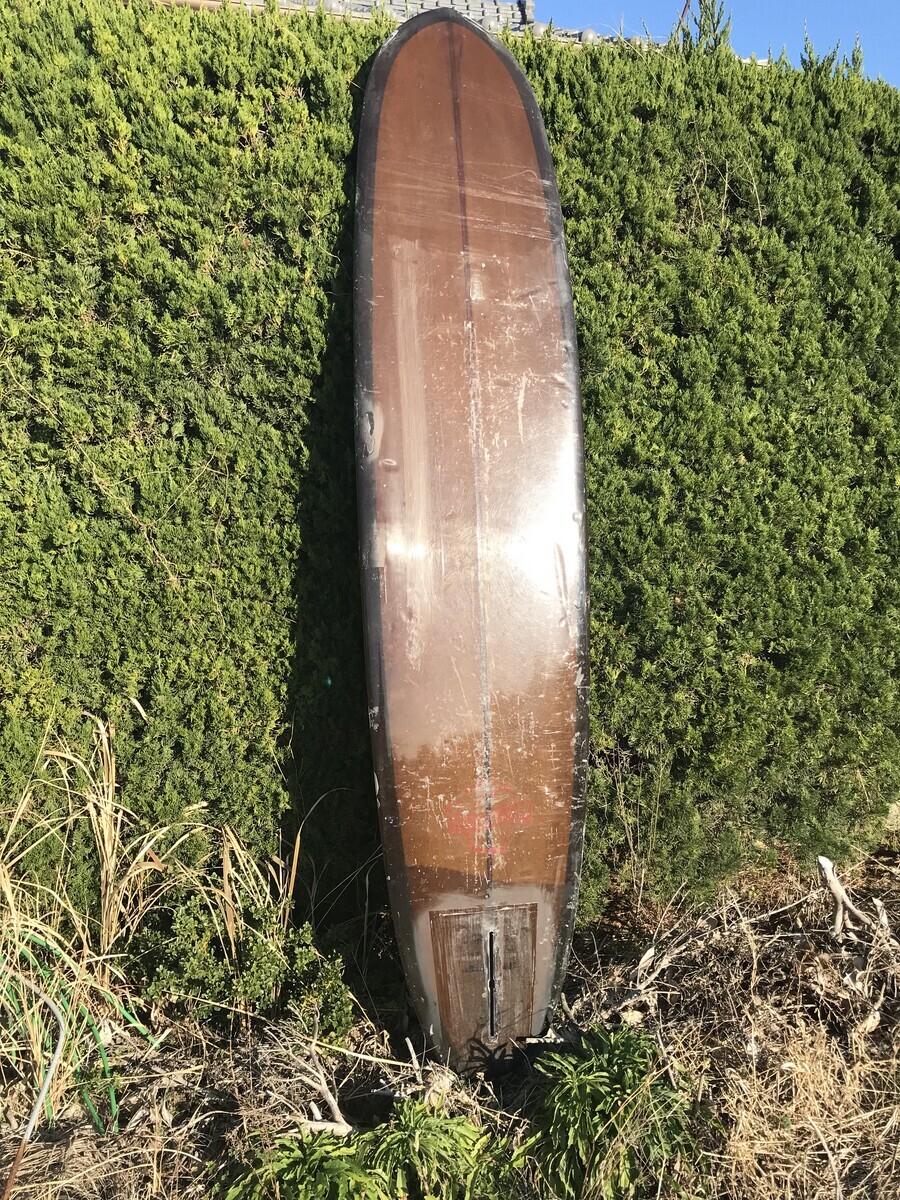 最近、わたし自身がボード選びに大変助けていただいたのでやれることはやろうと思い、購入から既に10数年経過していますがレビューします。時々、中古ボードとして目にしますので参考になれば幸いです。 当方、南房総でコンスタントに週2回程入っています。それをもとにレビューします。 ボード購入の経緯: ソフトトップのものから「シンプルでカッコいいシングルフィンロングボードに乗り換えてみよう。」シーコングホームページで情報収集をしまくって「クリームのビーチボールを買う」と決めていざ藤沢店へ。2011年ごろのことです。 ボードカラー: 茶色のティント。藤沢店にて一目惚れ。深みがあり、飽きもきません。土間スペースに掛けて保管しています。 ボードの形状: 長さ9'4 緩やかなポイントノーズ ワイデストボイントは前方寄り 脇に抱えて運ぶのは難しい ピンテール レールは厚すぎず薄すぎずとてもよい フィンセッティング: 普段はグリノー4a 10 パワフルな波ではターンが抜けてしまうことがあるのでスパーキー9.5にしています。ドライブと安定が最高です。 パドル&テイクオフ: 前方のワイズにより安定しています。 ウェイティングはいちばん沖で大丈夫です。 ボードの重さにより最初の5回のパドルで加速します。その後は波に合わせて調整します。ウネリからキャッチできます。ピークに向かってフェードで若しくはピークのビハインドからテイクオフできます。リラックスしてポケットやパワーゾーンを味わうことができます。 ライディングライン: 形のよいほれた波ではドロップしてボトムターンしてトップへ向かうこともできます。 張った波ではレールをセットしてノーズアクションが可能です。 トリムポジションでの万能感は抜群です。 コントロールしやすく基本的には「ビーチボール」の名の通り波のポケット周りでステイして乗り継ぐことが楽しいです。 波のコンディション: ビーチ、リーフ、膝サイズ、頭オーバー問わず万能です。 いくつかのボードに乗りましたが今のところのわたしのマジックボードとなっています。セルフリペアを重ねながら乗り継いでいます。 https://youtu.be/BhfgLc9UPlY?si=_tHMIUgJCsktuJUI ↑2023年夏、通りがかりの友人に偶然撮っていただきました。台風うねりの届いた内房の小波でビーチボールに乗るわたしです。初心者でも小波でも遊べることを感じていただき、ボード選びの参考になれば幸いです。